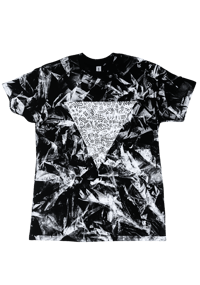 Qyramid TEE: Gildan Black 100% cotton tee, marbled and hand painted and printed with white screenprint ink.